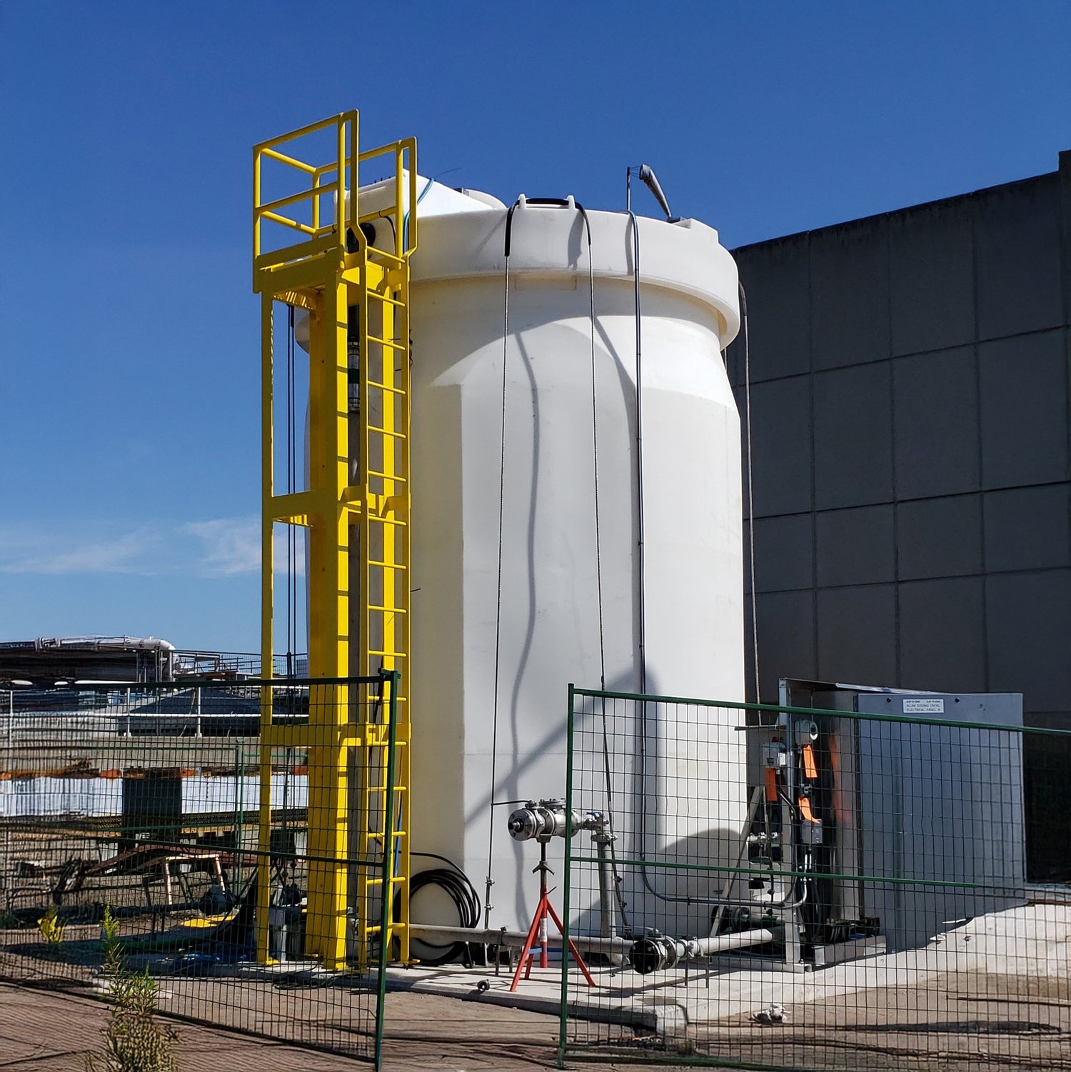 - Process chemical feed tanks for pH control, disinfection, or cleaning