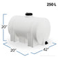 The 65 Gallon Plastic Horizontal Leg Tank (Model 41940) from BARR Plastics is designed for versatility and reliability in a variety of applications such as water storage, agricultural use, and chemical handling. Made from high-density polyethylene (HDPE), this tank is built to withstand the rigors of daily use while offering excellent resistance to chemicals and environmental stress.