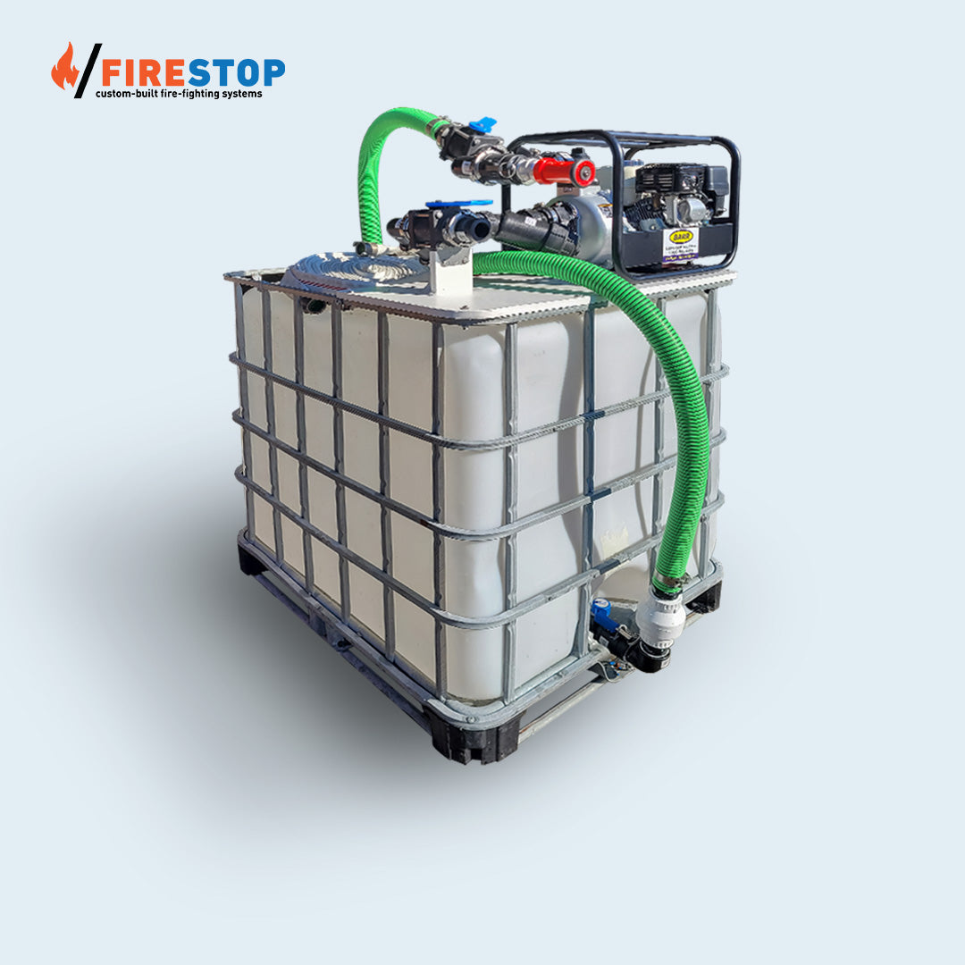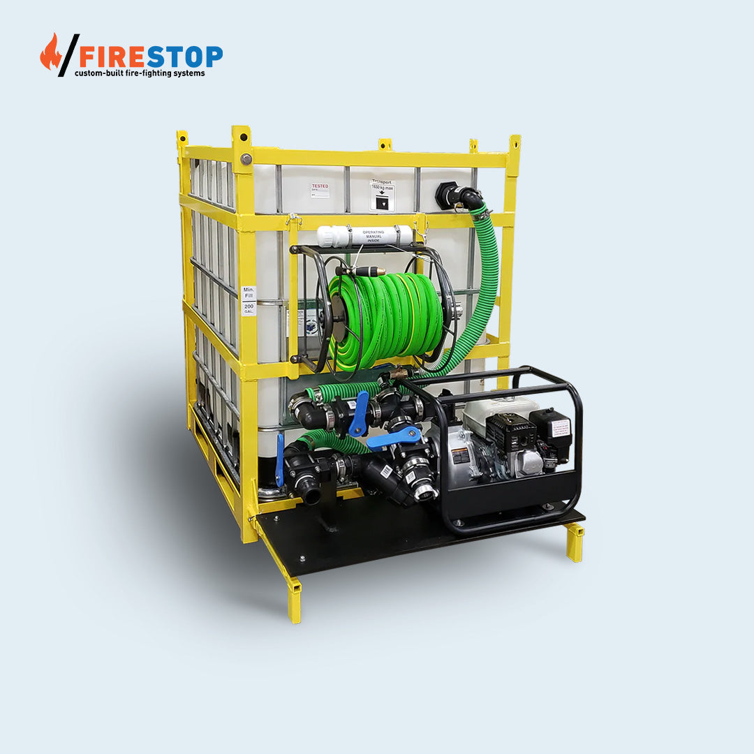 Customize standard cage totes to create a practical unit for watering, firefighting, and more. Equip these cage totes with custom pumps, hoses, valves, and fittings, all built onto a skid for easy movement and storage.